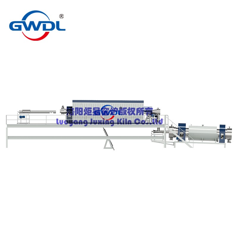 The rotary kiln is a pyroprocessing device used to raise materials to a high temperature (calcination) in a batch process. The basic components of a rotary kiln are the shell, the refractory linings, support tires (riding rings) and rollers, drive gear, and the heating elements. GWL has designed different solutions according to the needs of different customers. GWL is particularly good at sintering powder and particles containing water and organic matter in products with relatively rich production experience.