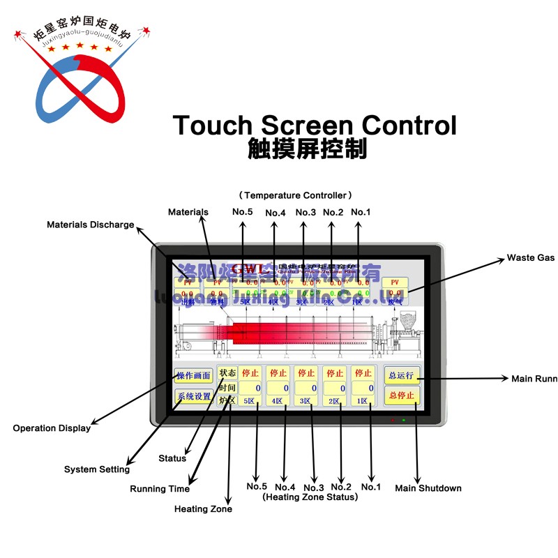 GWL Series high-temperature energy-saving rotary kiln(Calcining kiln), The separation of the control system and kiln tube, Furnace lining using vacuum forming high purity alumina light material with the multi-layer structure. Using 304 &310S stainless steel or other special metal materials or quartz tube as the kiln tube materials. It is widely used in powder sintering and calcination and processing of graphene powder.