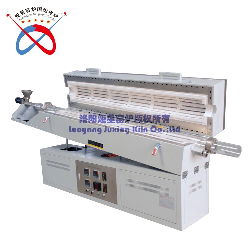 The furnaces are suitable for continuous material processing. Residence time in the heated zone depends on the degree of inclination and the rotating speed (which can be controlled by the customer) and the length of the working tube, in addition to the flow properties of the material.